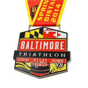 Custom Triathlon Enamel Cheap Medals With Ribbon