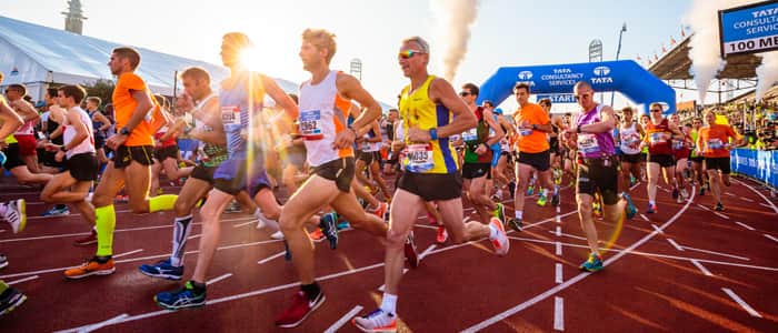 The marathon is a long-distance race, completed by running, walking, or a run/walk strategy. The marathon was one of the original modern Olympic events in 1896, though the distance did not become standardized until 1921.
